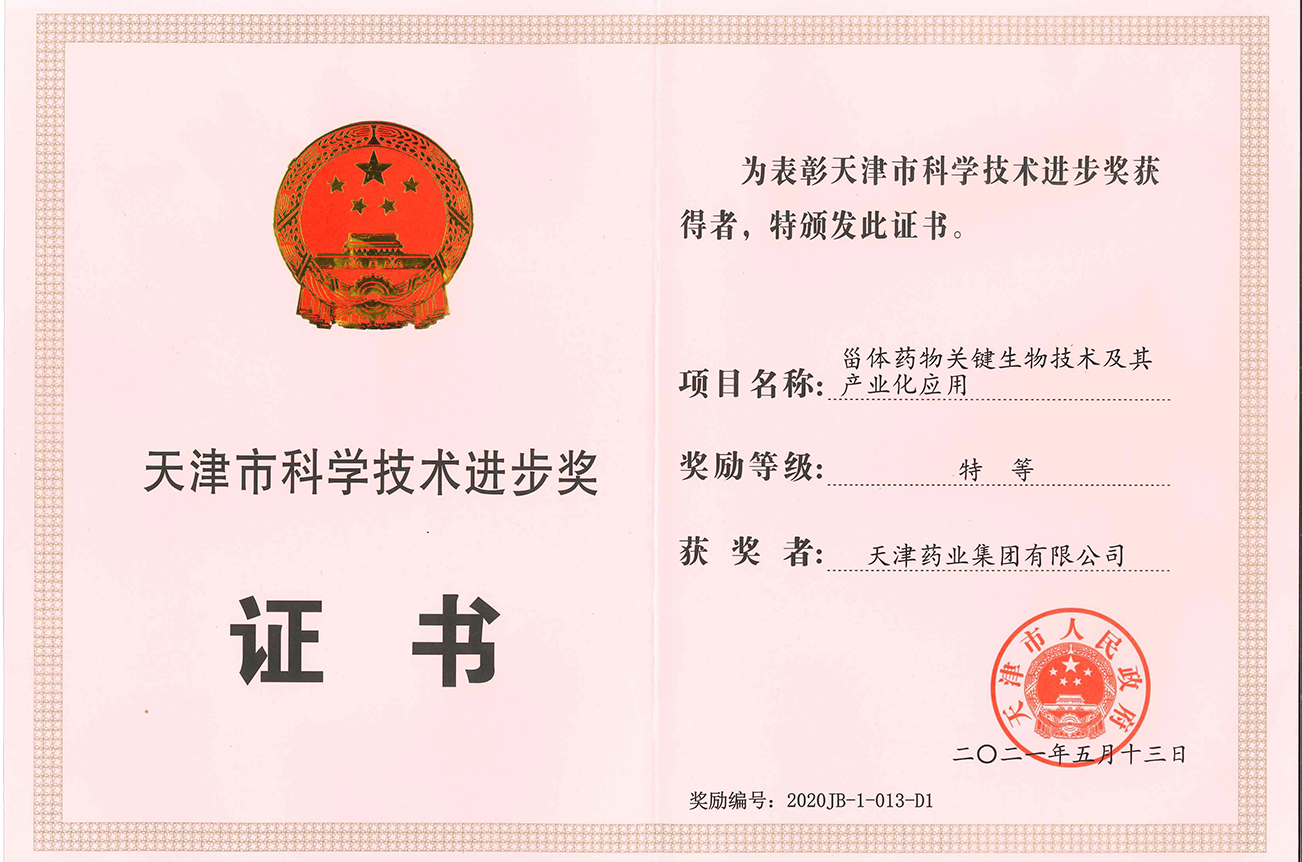 It has undertaken more than40 nationwide and Tianjin-level scientific research projects, and its project" Innovation and Research on Core Technology System for SecondaryDevelopment of Proprietary Chinese Medicine and its Industrialization" wonthe first prize of the National Science and Technology Progress Award.